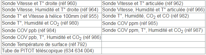Ces appareils portables, simples d’utilisation, mesurent et mémorisent simultanément plusieurs paramètres environnementaux (vitesse d’air, température, pression, humidité relative, CO, CO2) par le biais de différentes sondes adaptables.